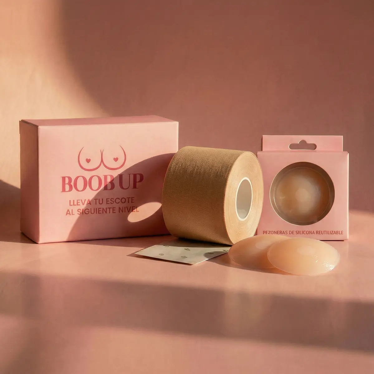 Boob Up Tape fija tus prendas para que permanezcan exactamente donde quieres, mientras que los Nipple Cover aseguran una cobertura cómoda y segura, evitando fricción o incomodidad. Este combo está pensado para darte control, confianza y tranquilidad en cualquier ocasión, desde eventos especiales hasta tu día a día.