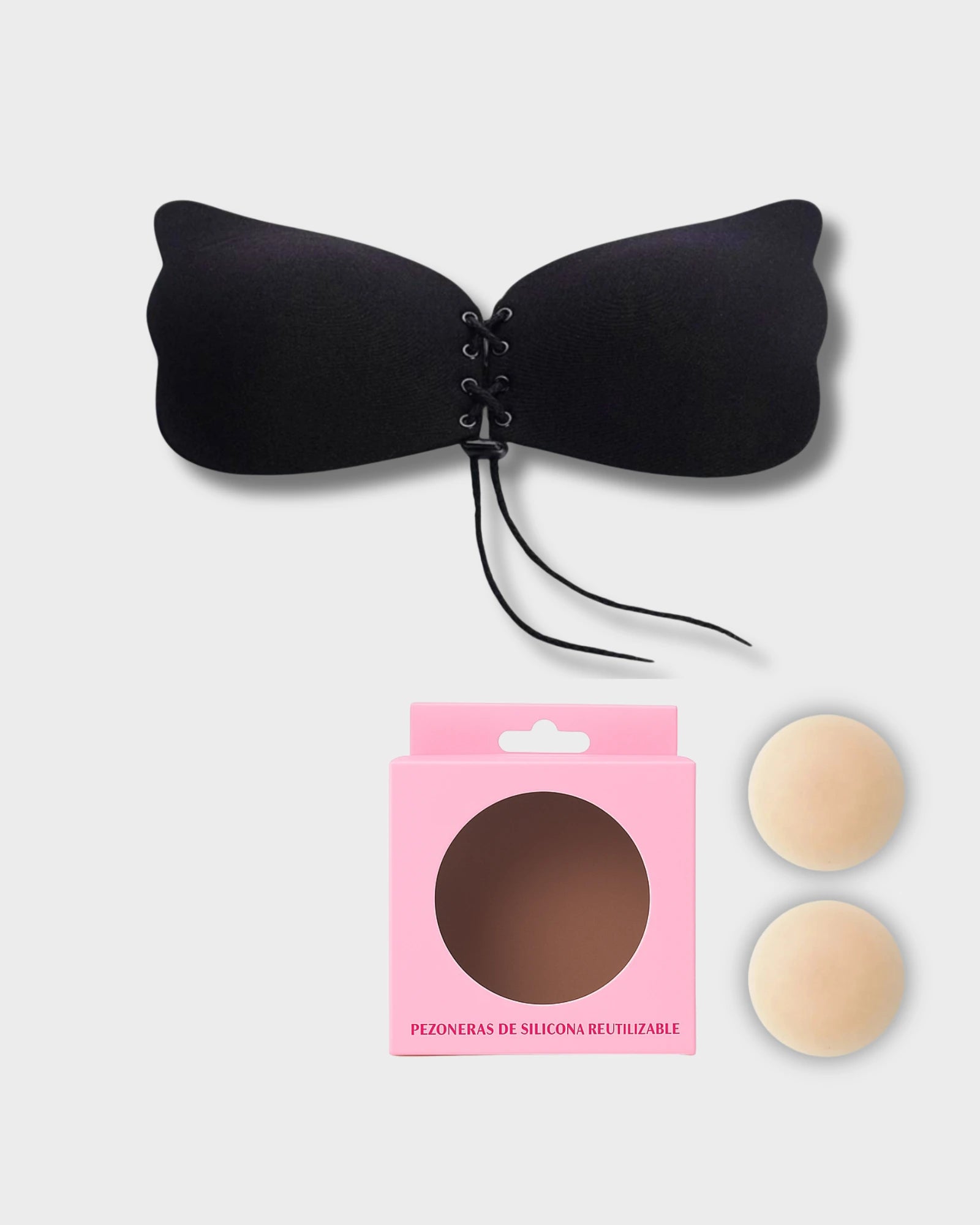 Es un sujetador adhesivo / tipo “stick-on” (sin espalda, sin tirantes visibles) que da volumen y realce (push-up) y se adapta discretamente bajo prendas que requieren invisibilidad. Perfecto para escotes, espaldas descubiertas y vestidos especiales.